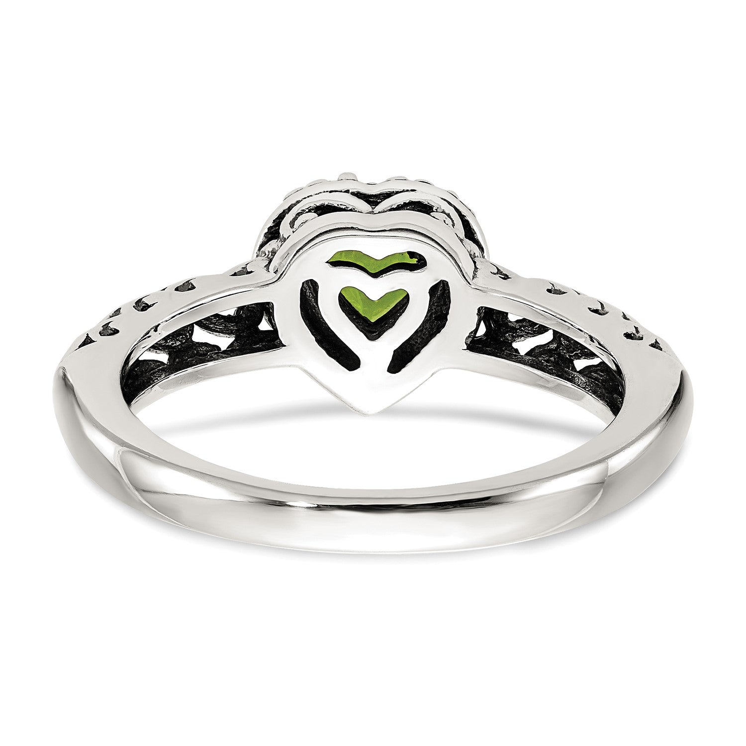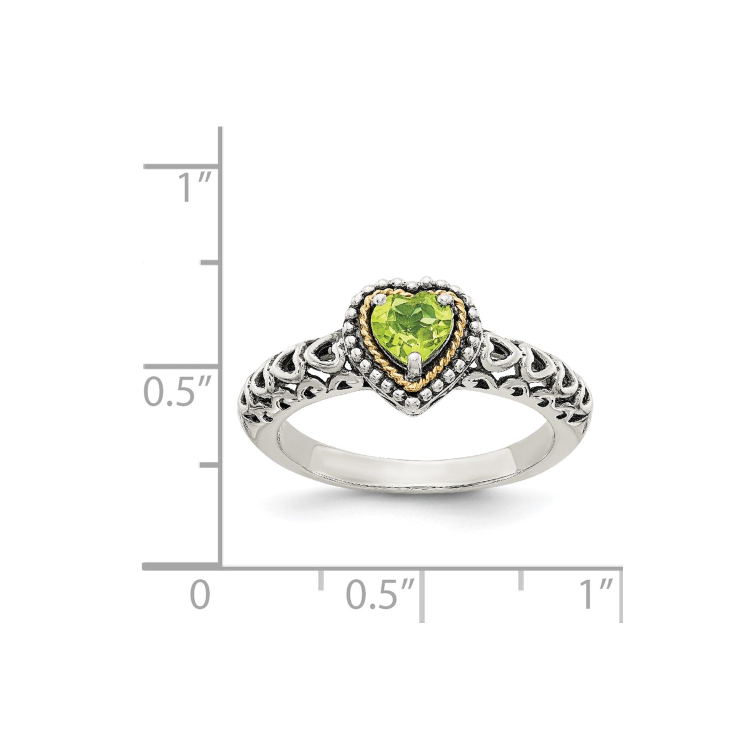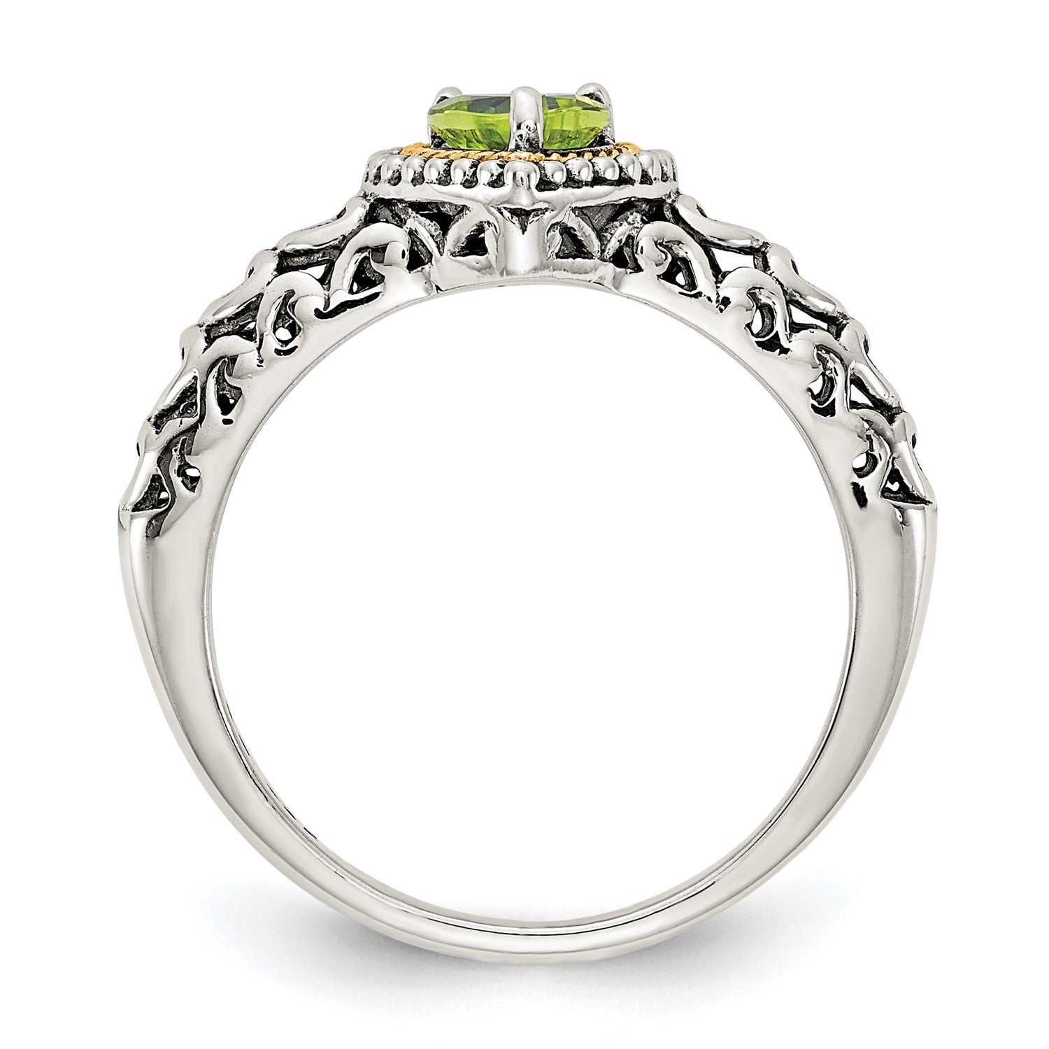 GSS Sterling Silver with 14K Accent Antiqued Heart Peridot Ring