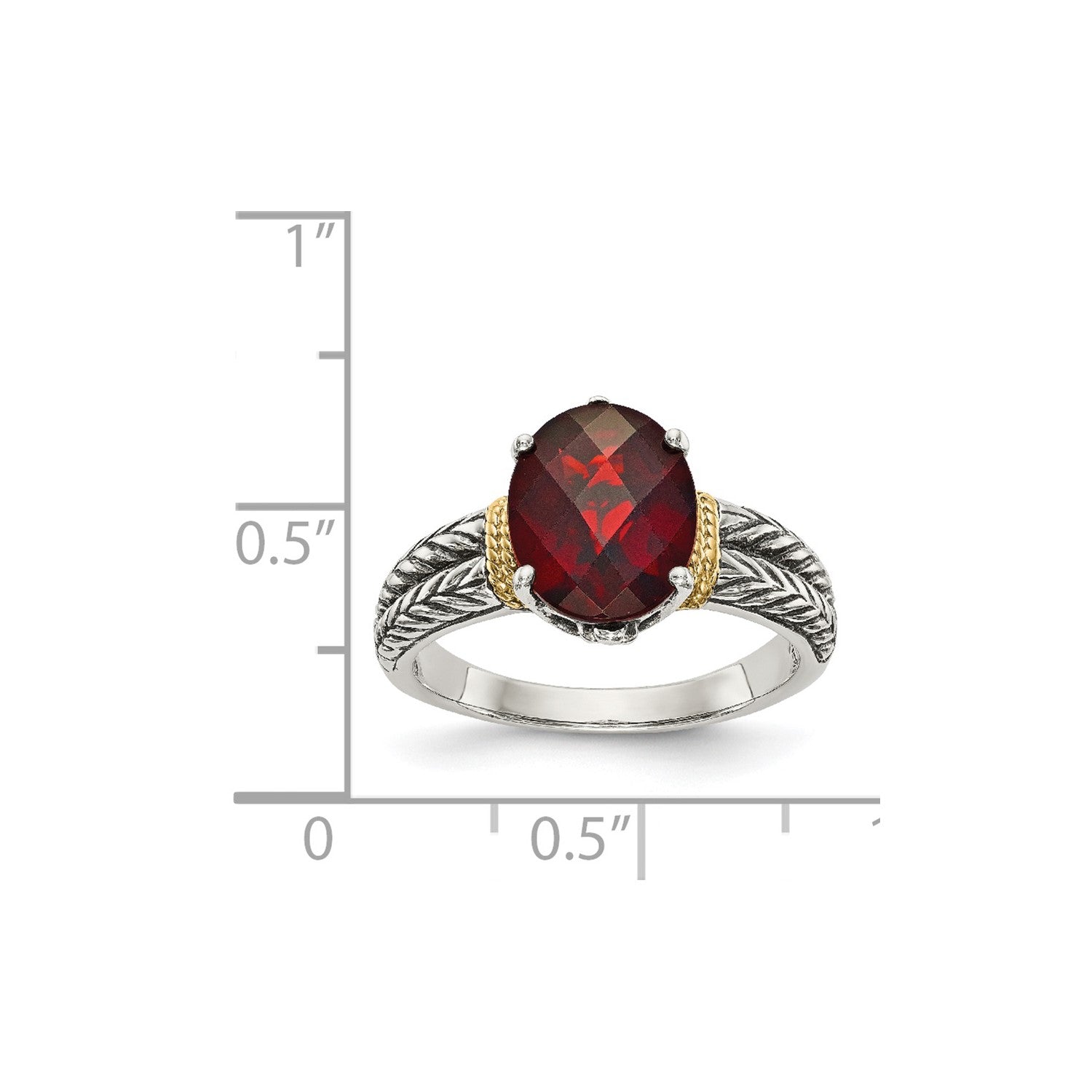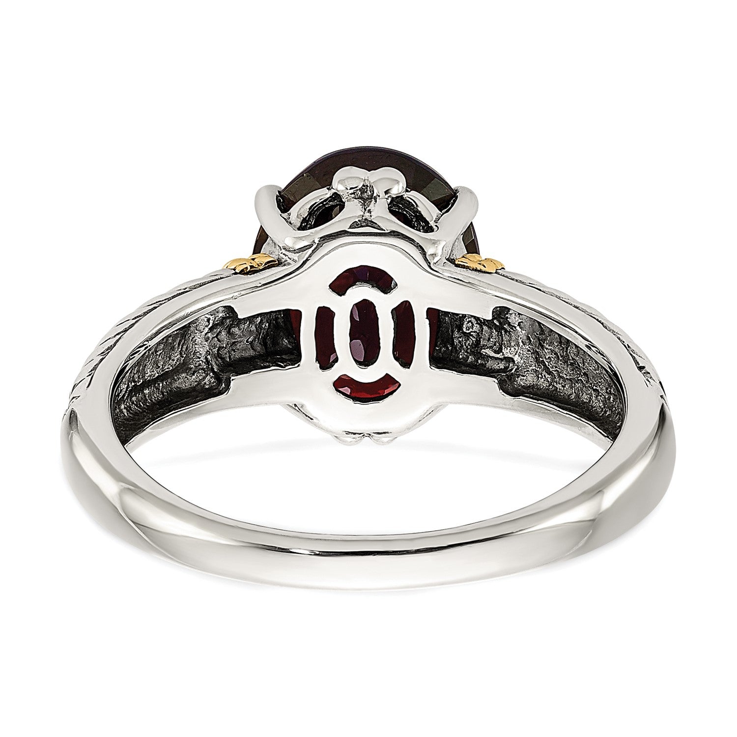 GSS Sterling Silver with 14K Accent Antiqued Oval Garnet Ring
