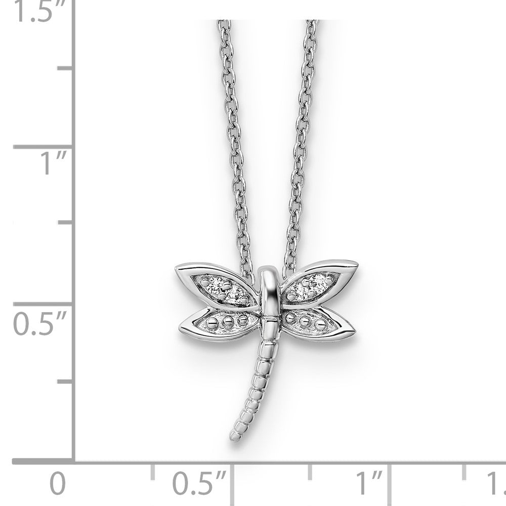 DSS Sterling Silver Rhodium-plated 18 Inch Diamond Dragonfly Necklace with 2 Inch Extender