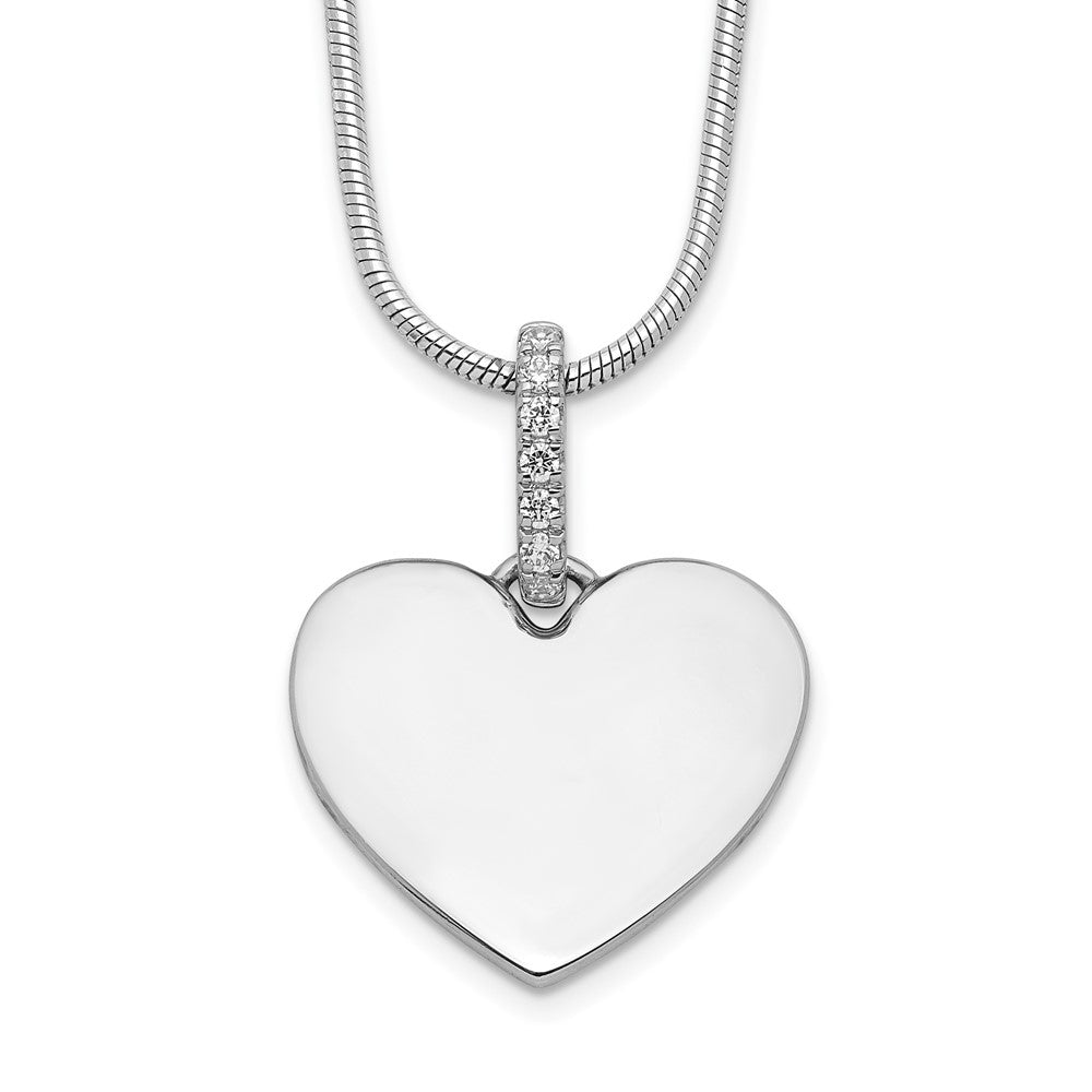 DSS Sterling Silver Rhodium-plated 18 Inch Diamond Heart Necklace with 2 Inch Extender