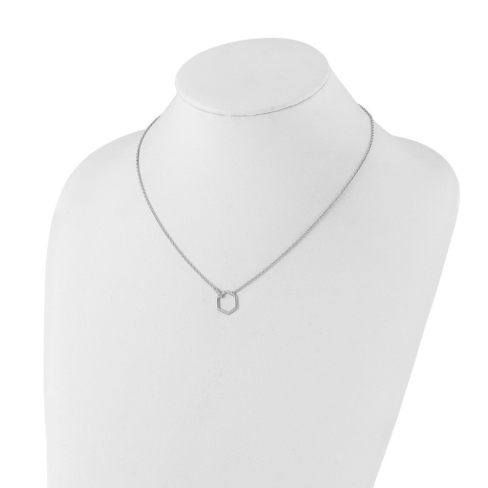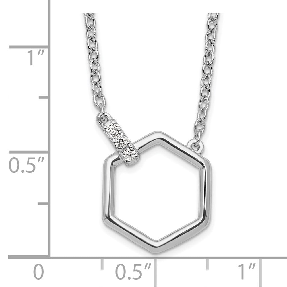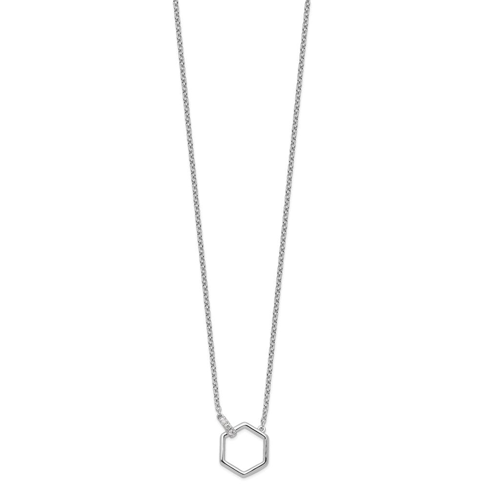 DSS Sterling Silver Rhodium-plated 18 Inch Diamond Hexagon Necklace