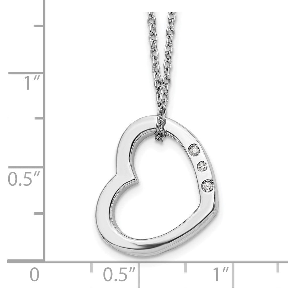 DSS Sterling Silver Rhodium-plated 18 Inch Diamond Open Heart Necklace with 2 Inch Extender