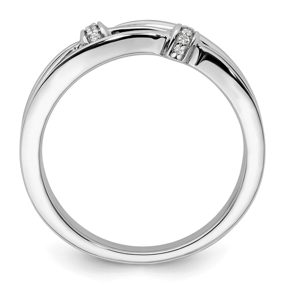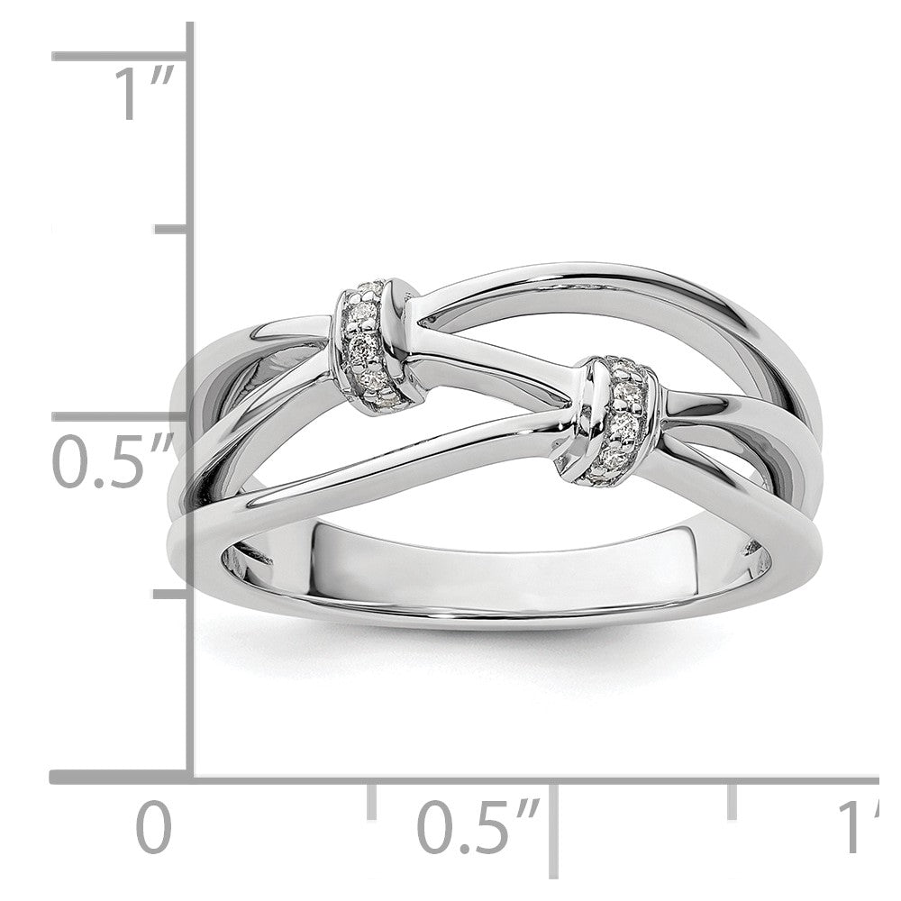 DSS Sterling Silver Rhodium-plated Diamond Criss Cross Ring