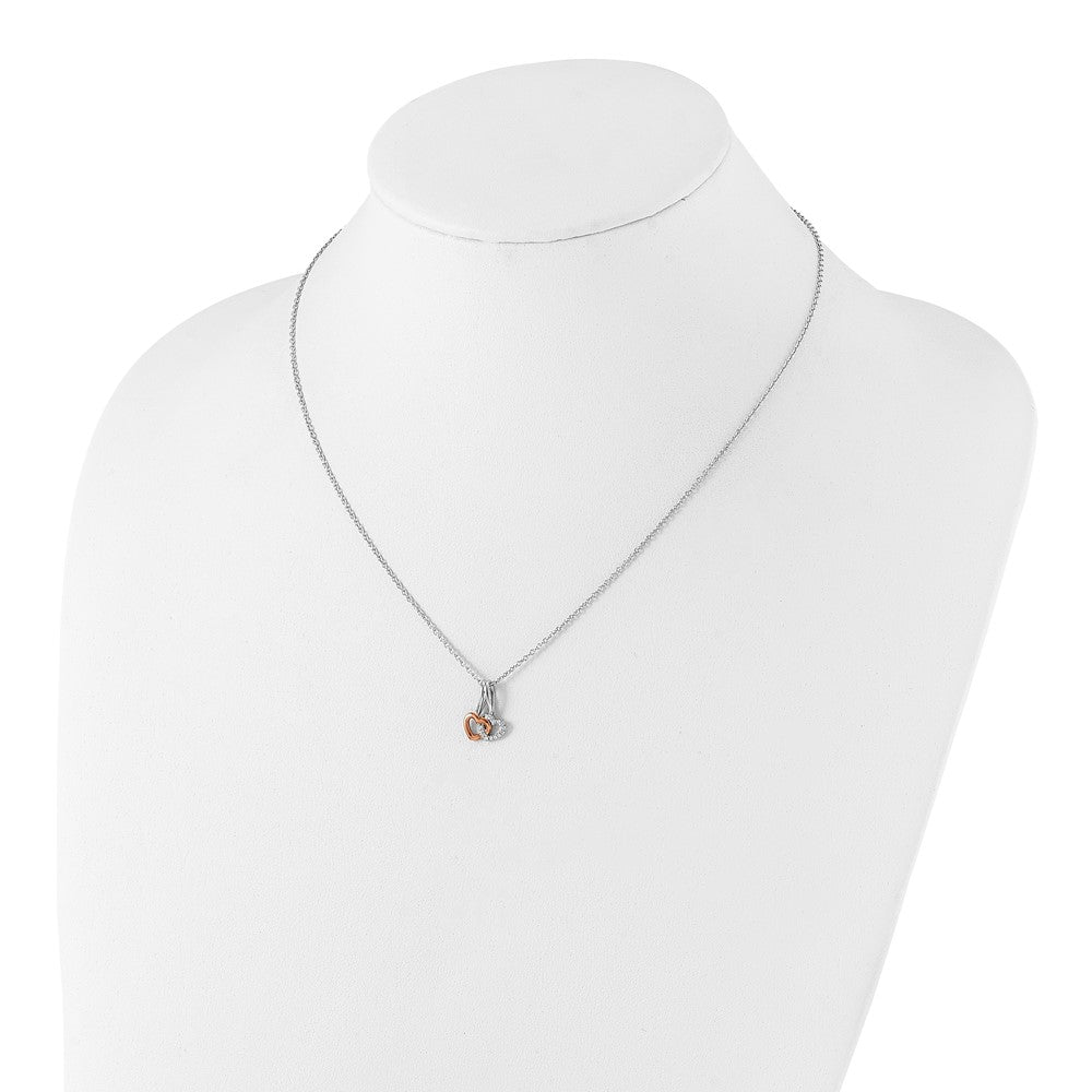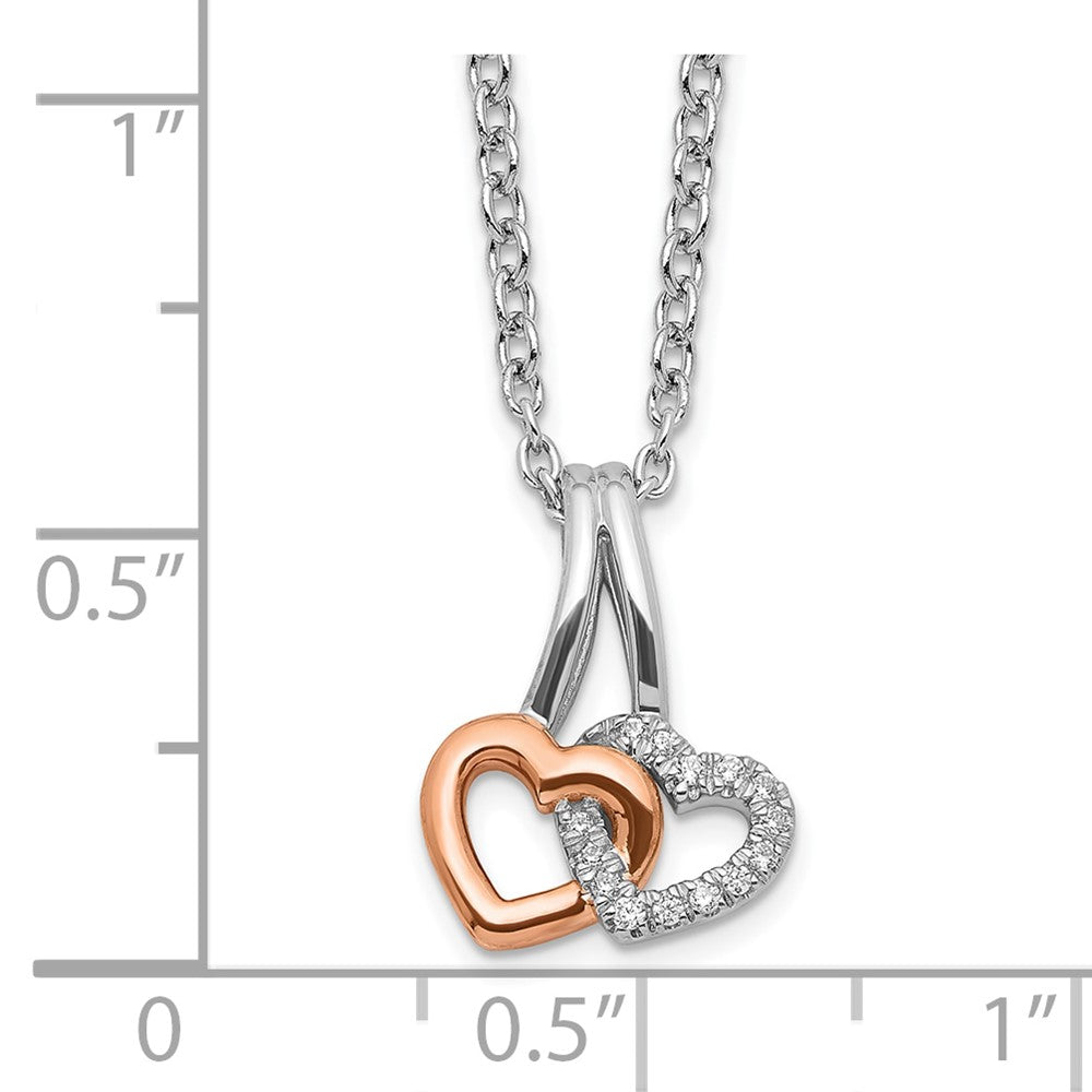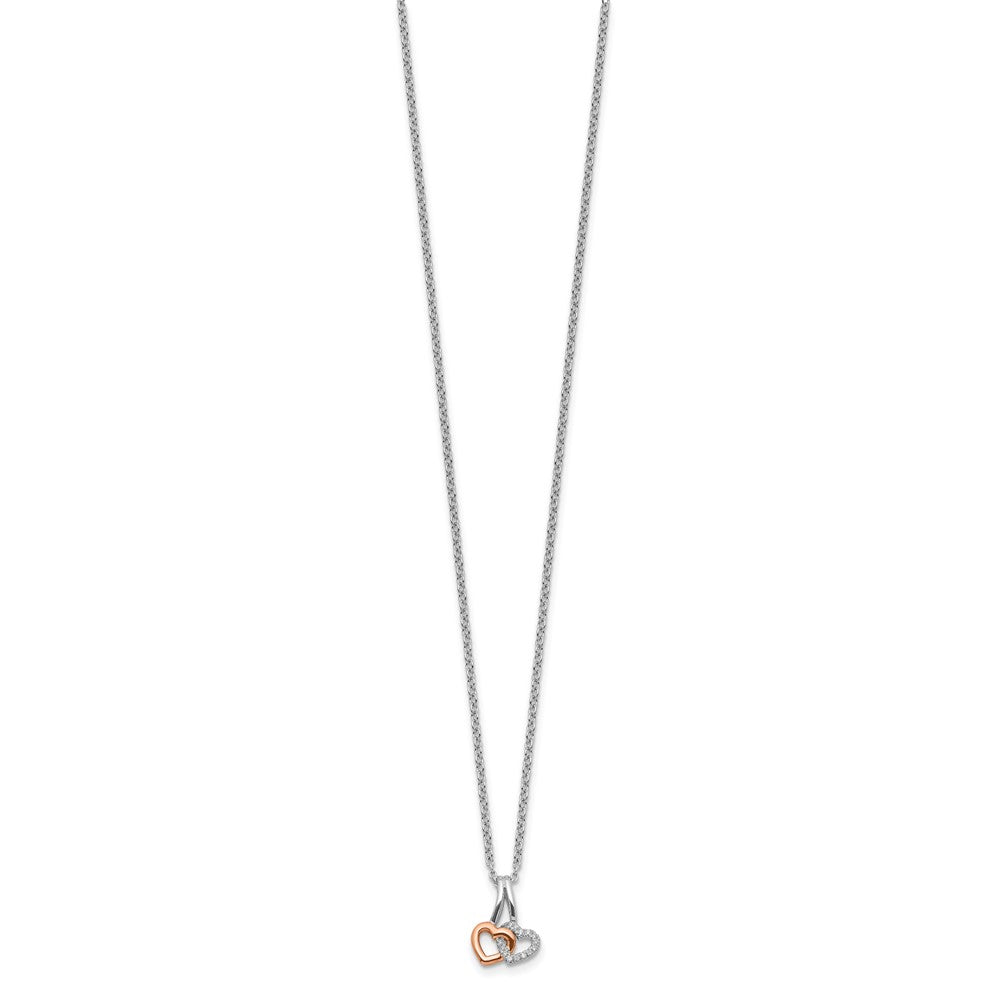 DSS Sterling Silver Rhodium-plated Rose-tone 18 Inch Diamond Hearts Necklace with 2 Inch Extender
