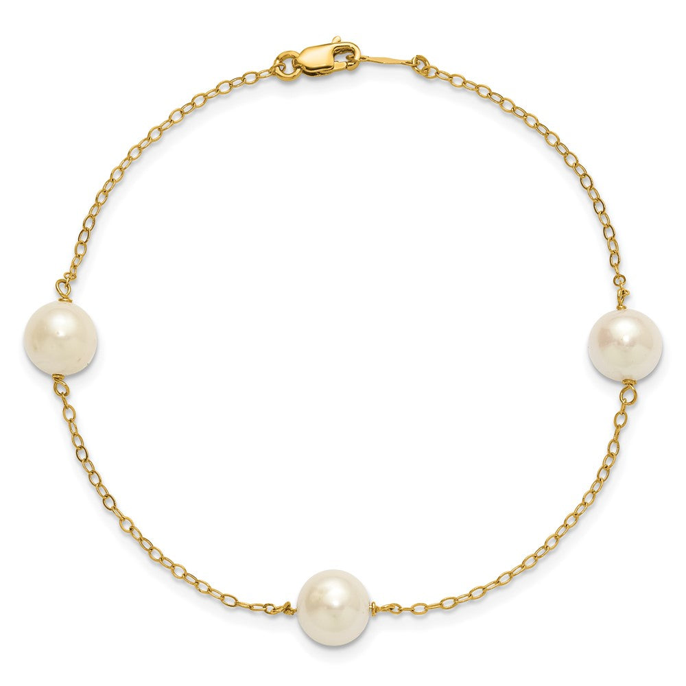PGB 14k 7-8mm White Near-Round Freshwater Cultured Pearl 3-Station 7.25 inch Bracelet