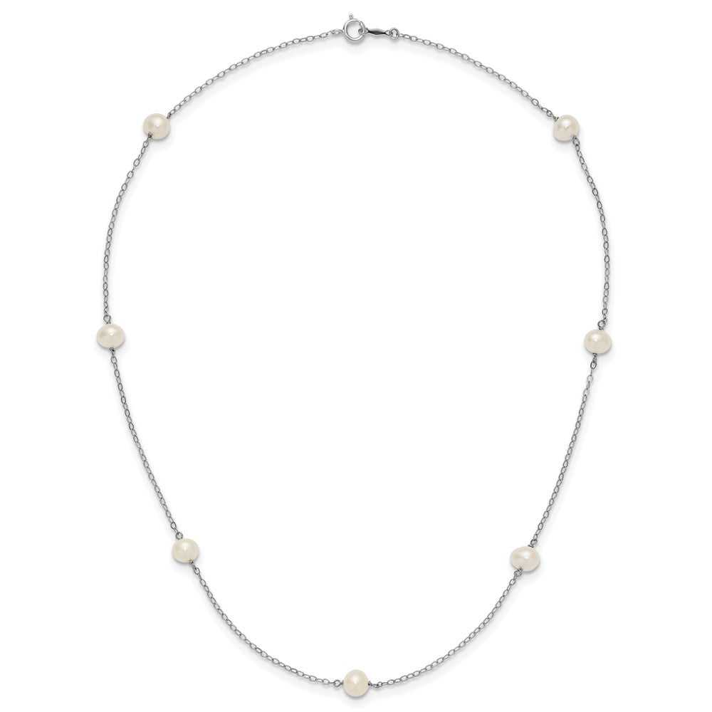 14k White Gold 5-6mm White Round Freshwater Cultured Pearl 7-Station 16 inch Necklace